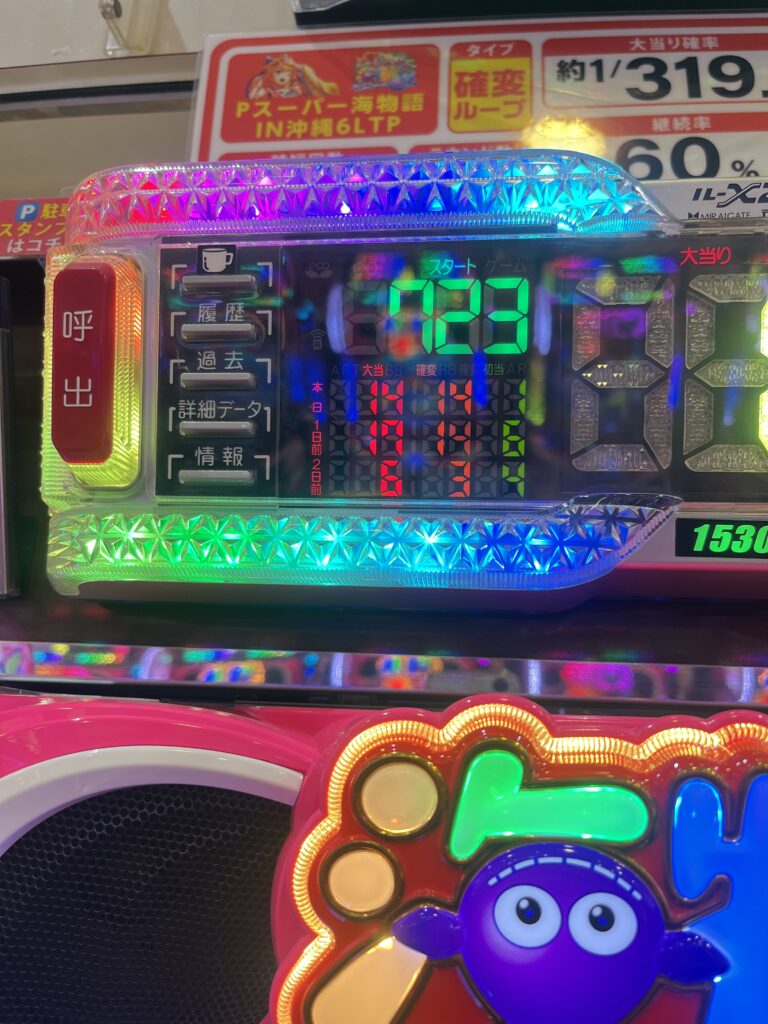 ミドルスペックでは勝ちやすいと評判の 「Pスーパー海物語IN沖縄6」 をターゲットに変更。